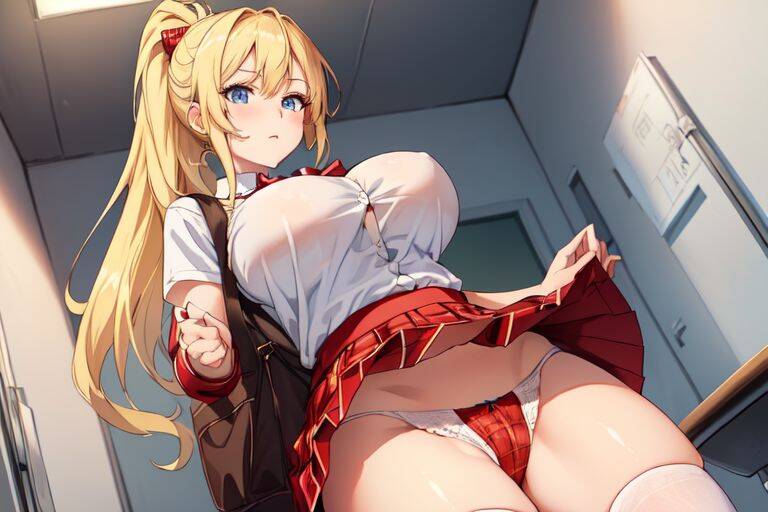 As Kyouko races through the hallway of the school, she can feel the dampness between her legs growing more and more intense. Her panties are sticking to her folds, making every step she takes that much more uncomfortable. She curses under her breath, wishing she had a spare pair of knickers handy.